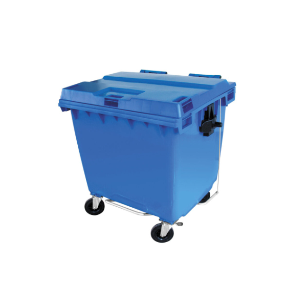Acompanha quatro rodas giratórias de borracha maciça de 8″ com carga de aço galvanizado com tratamento anti-corrosão, sendo duas com freio e duas sem freio e com ângulo de giro de 360º, tampa articulada ao próprio corpo, munhões laterais para basculamento, dreno para escoamento de líquidos e estrutura metálica do pedal em aço carbono galvanizado.